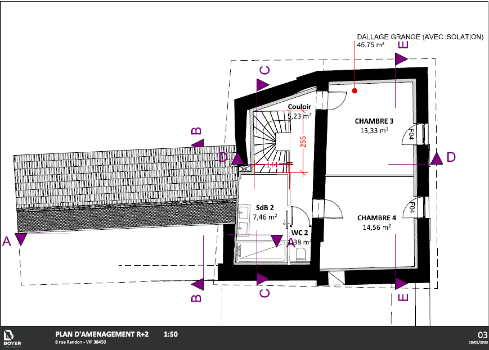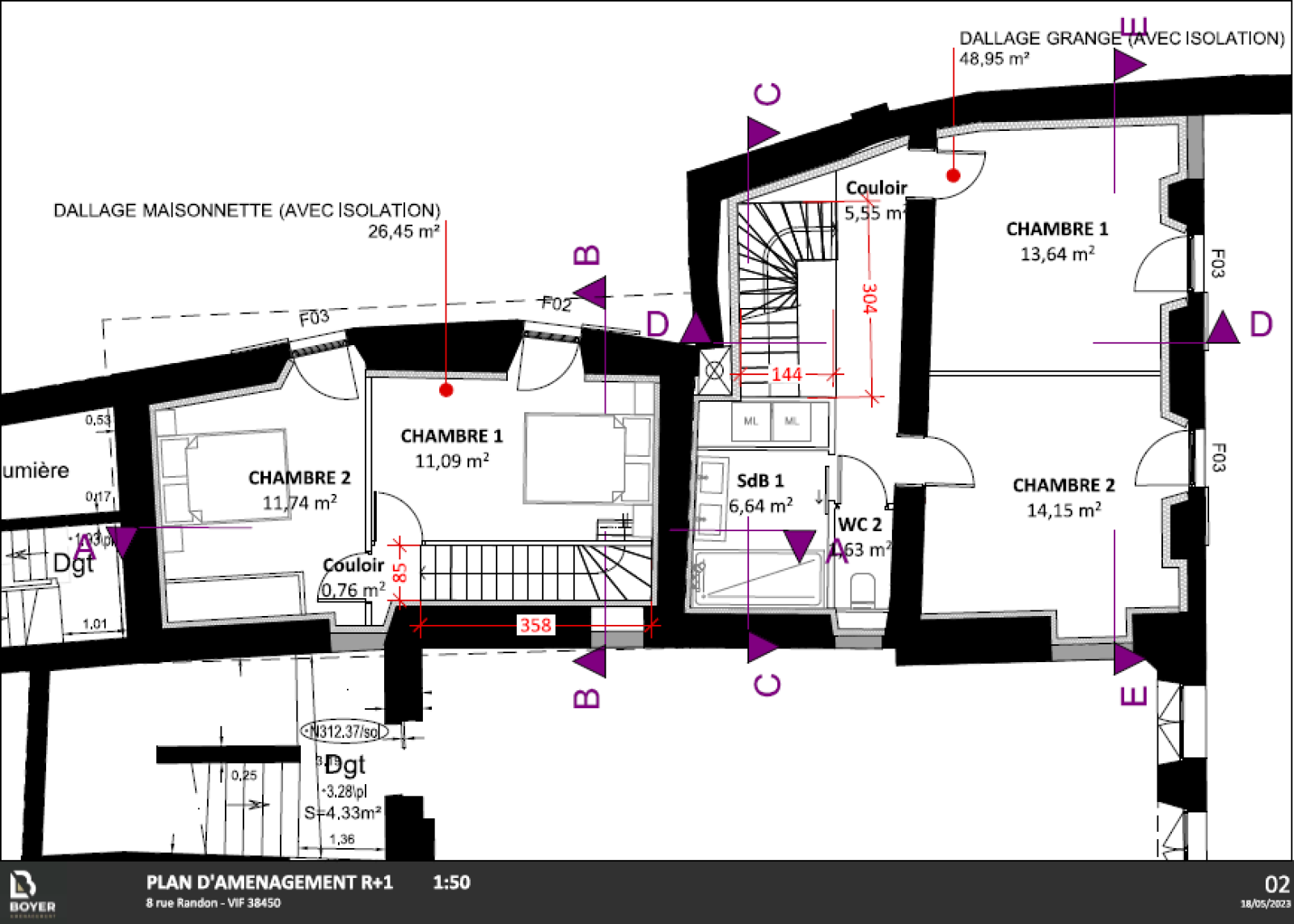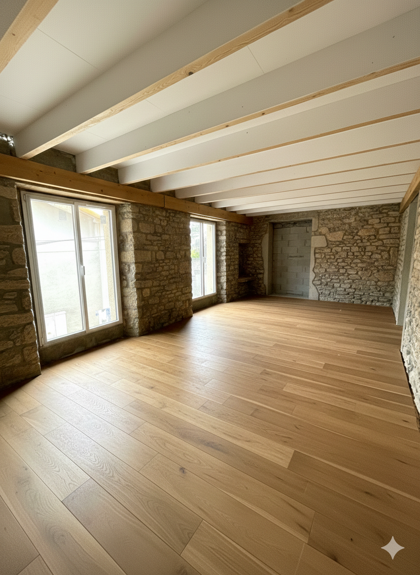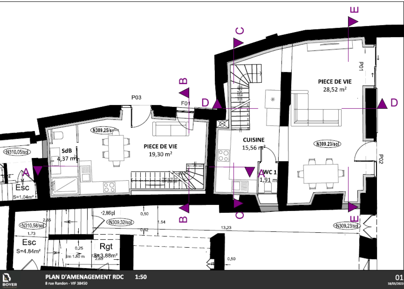 RARE ! Beau plateau à aménager au coeur du village de VIF, possibilités salon-séjour cuisine au RDC, WC, SDB au 1er 2 chambres, au 3 ème 2 chambres. Travaux terminés, la superficie sera de 129.56 m². Cour de 26 m².